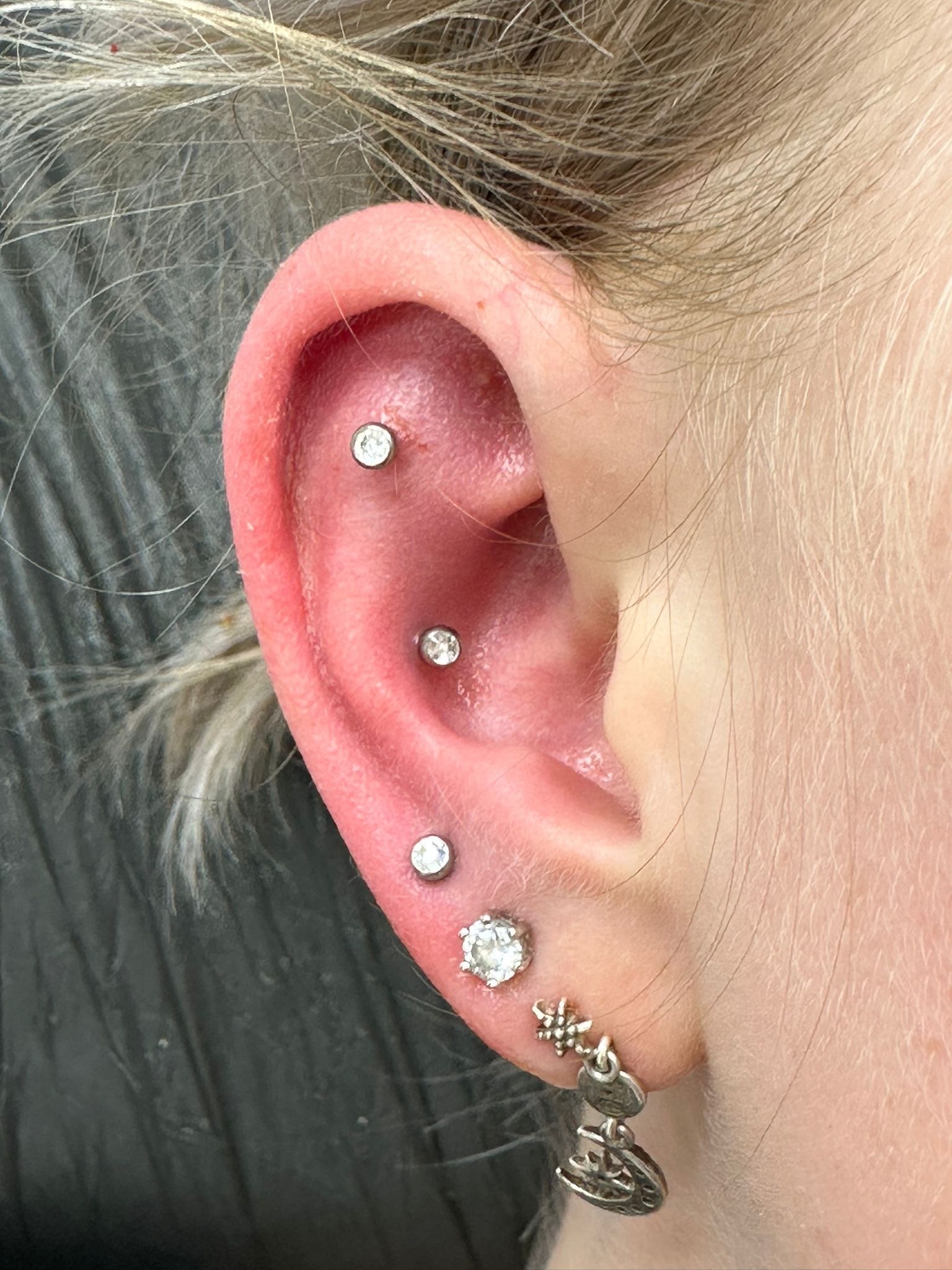 Als Erstschmuck verwenden wir Piercings aus Titan. Titan überzeugt als Material, weil es deutlich weniger Probleme mit allergischen Reaktionen und weniger Verfärbungen gibt. Generell kann man sagen, dass es viel hautverträglicher als andere Piercingmaterialien ist.