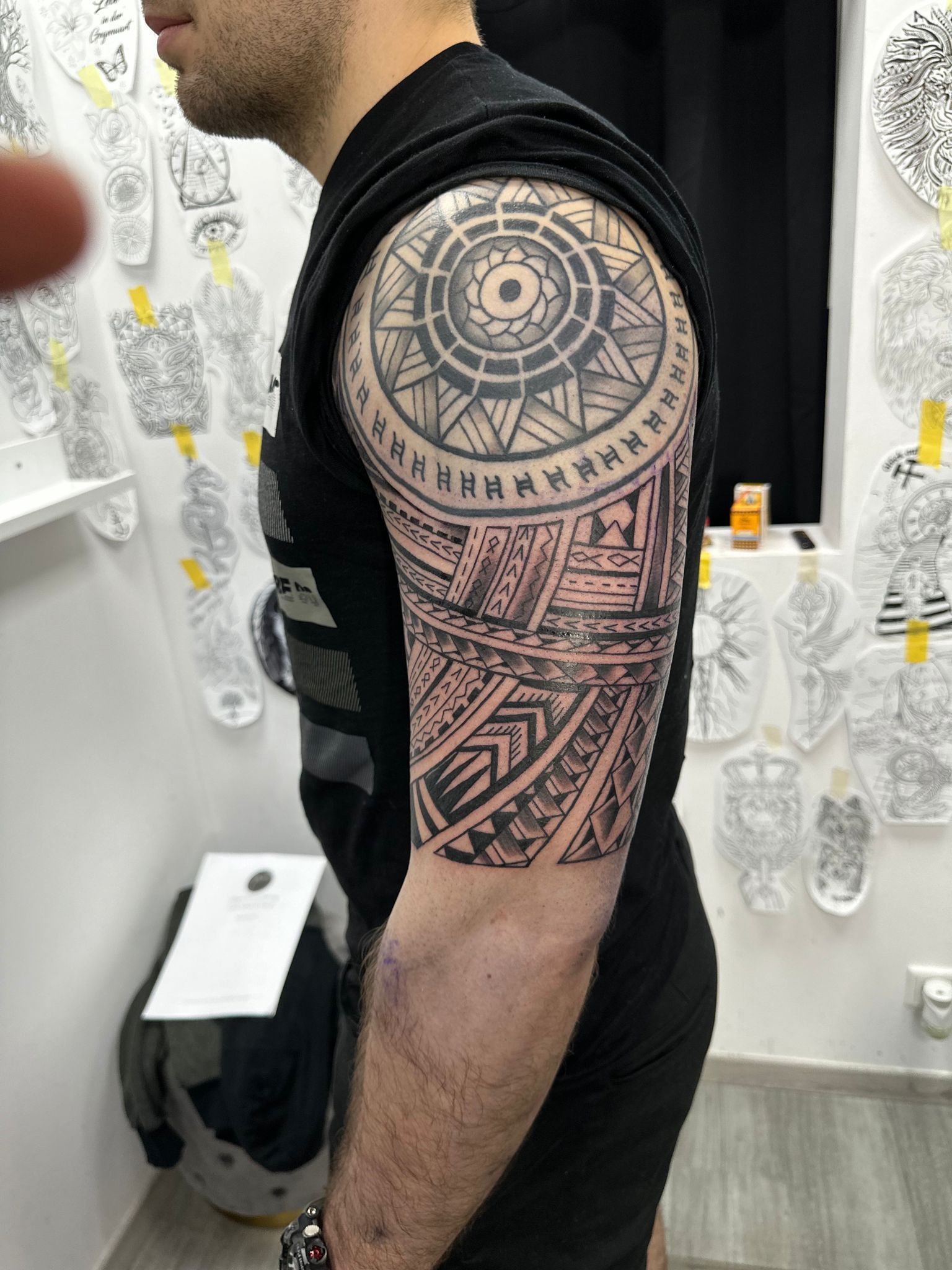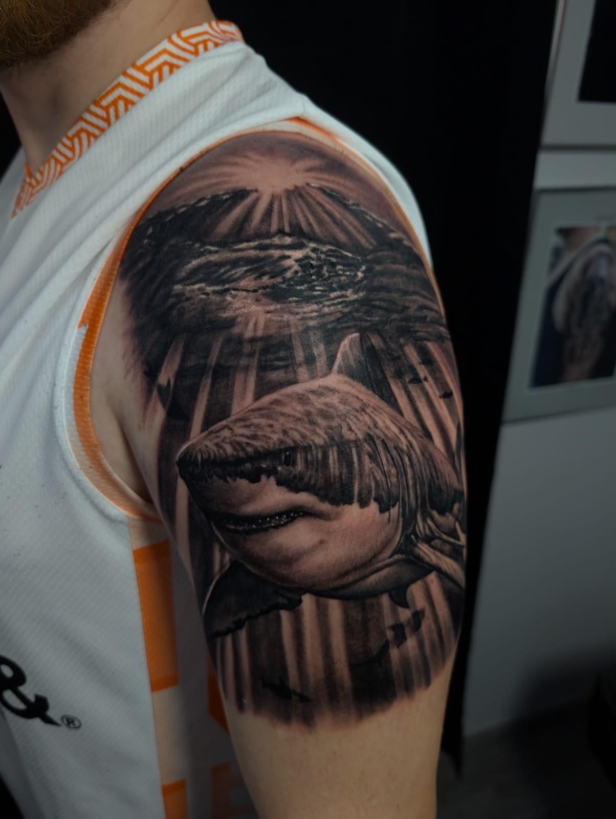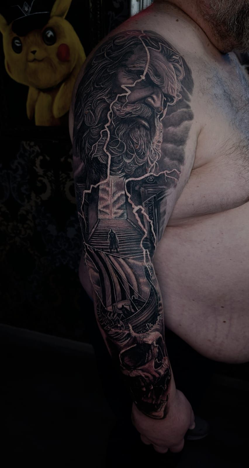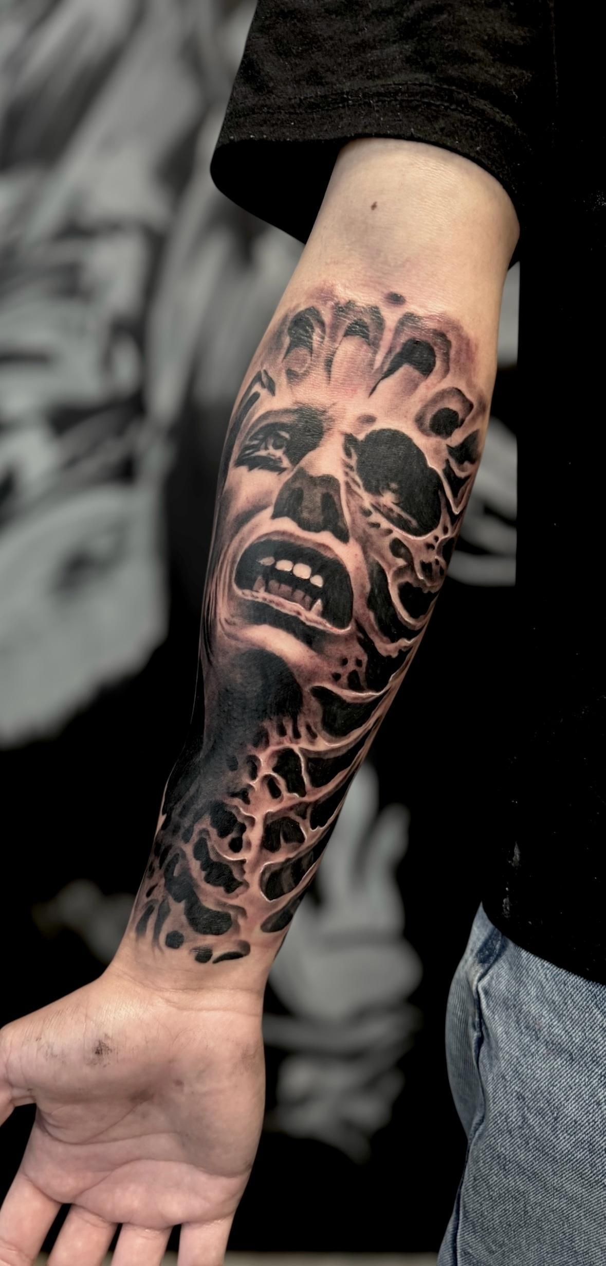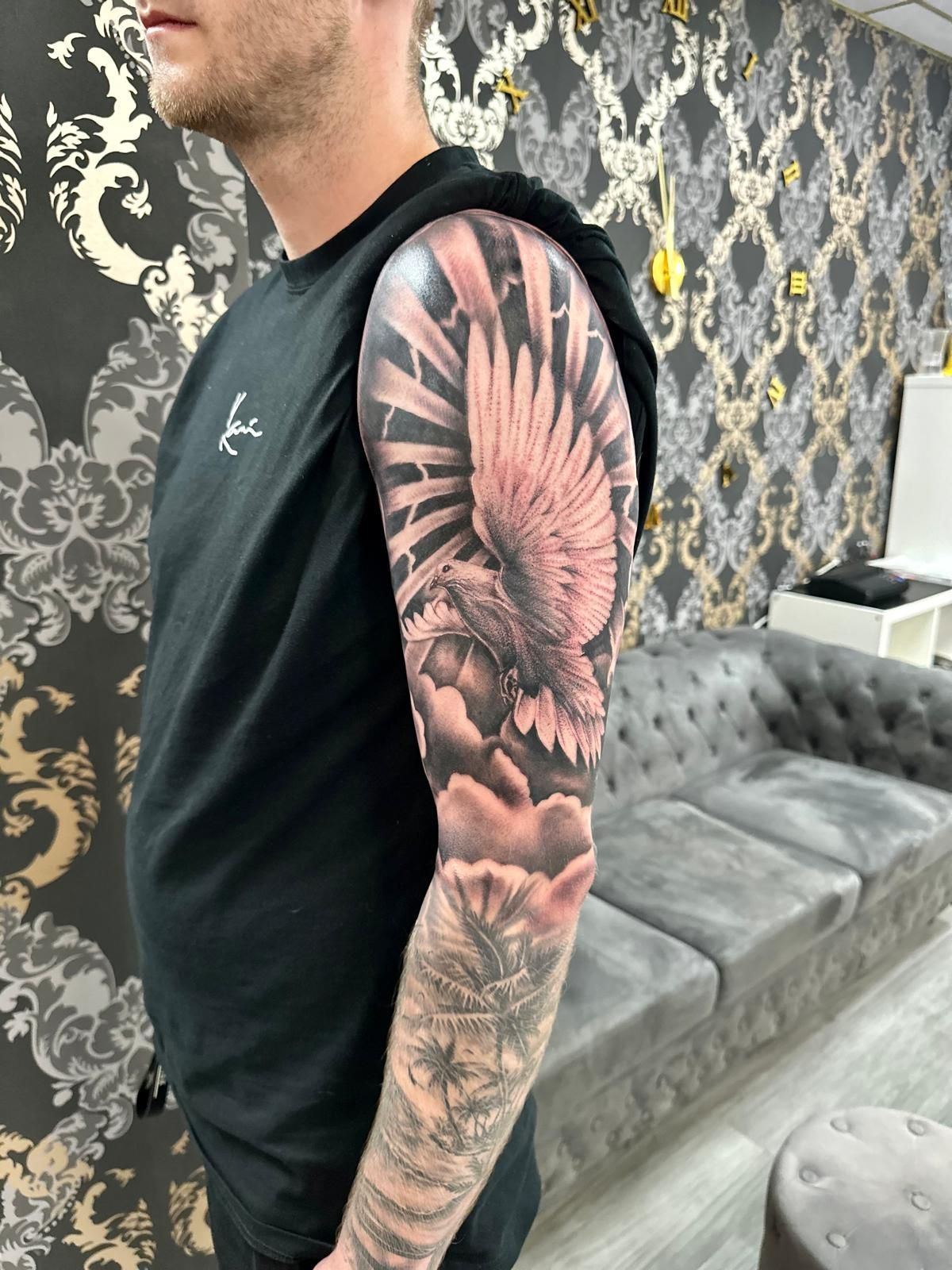 Der aus der Ukraine stammende Roman, kann mit seinen 32 Jahren schon mit 10 Jahren Tattooerfahrung glänzen und überzeugt mir einer Vielzahl von Richtungen die er zu tätowieren beherrscht. Der Frischling im Team entpuppt sich also als "alter Hase" im Tattoo Business.