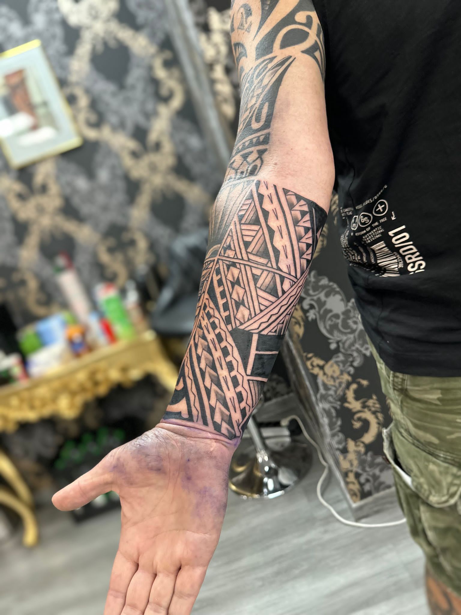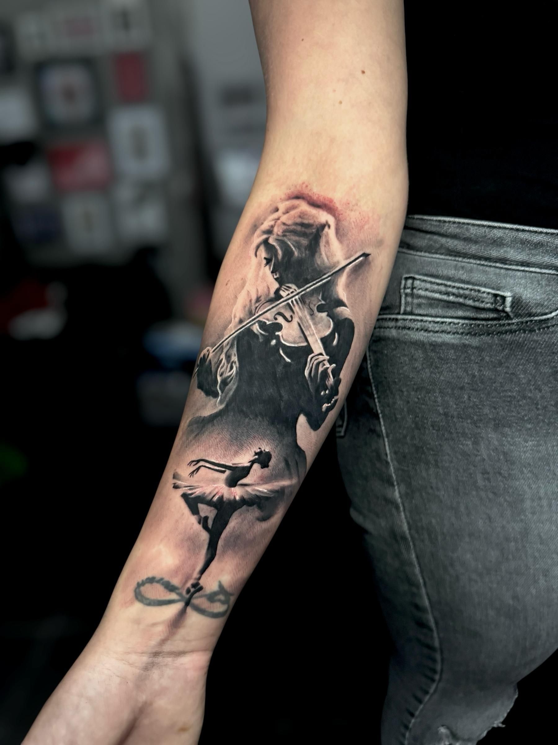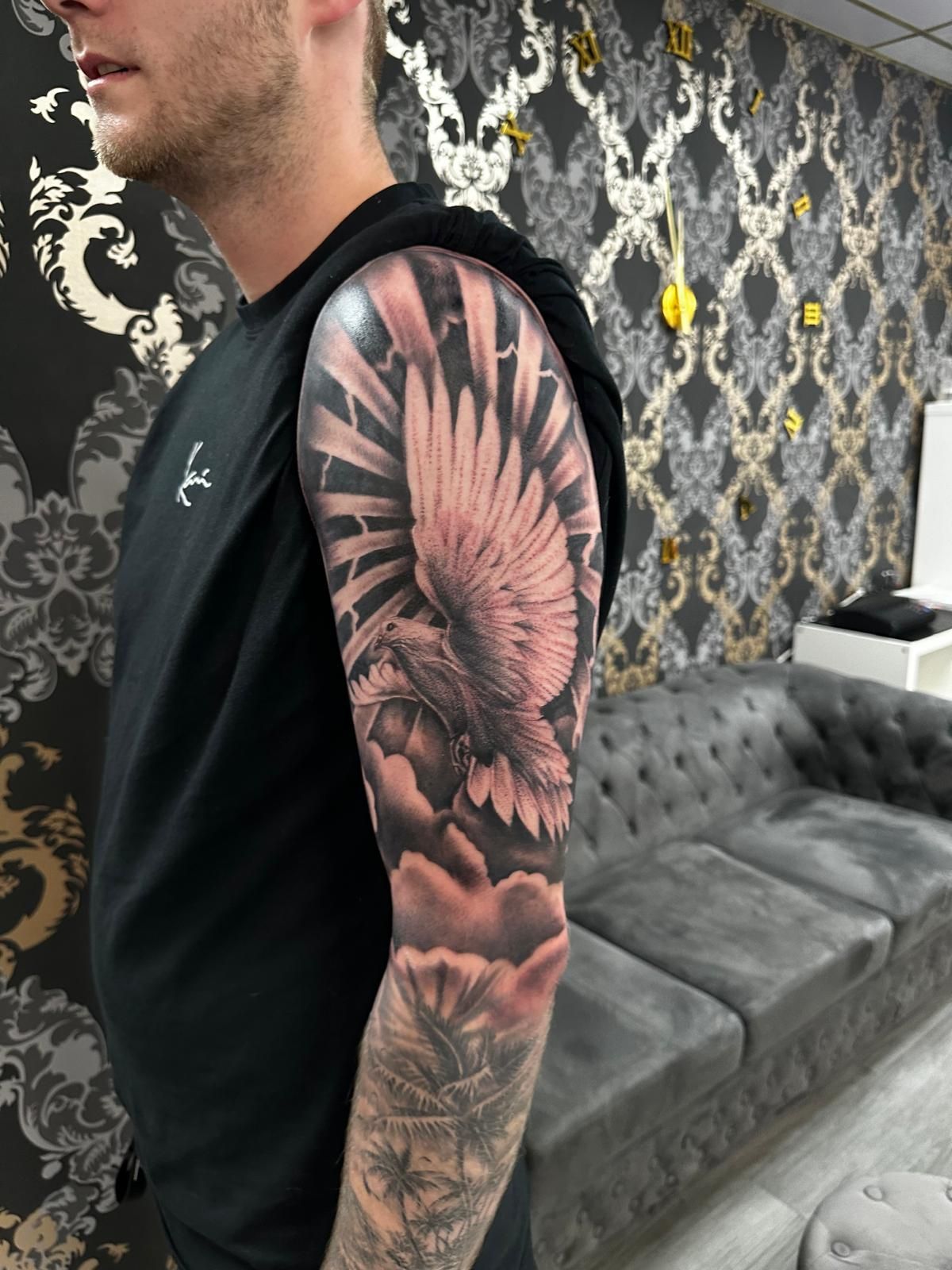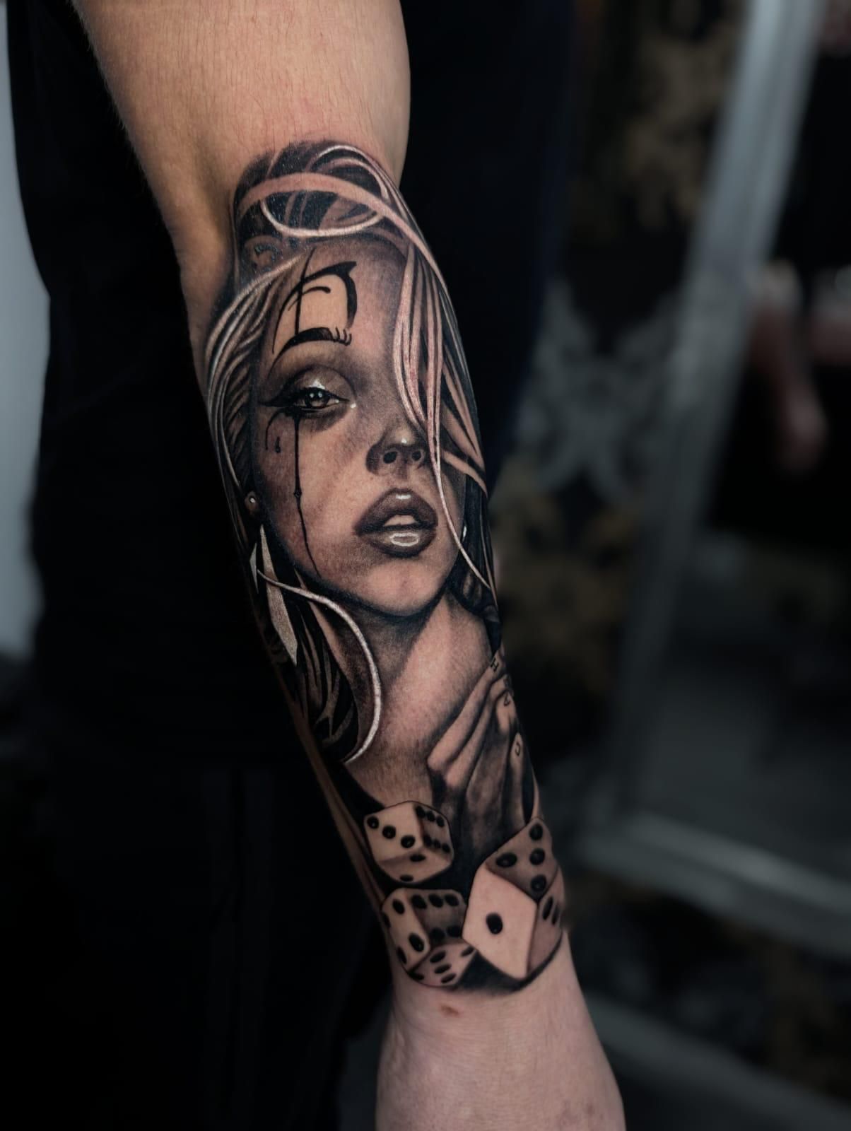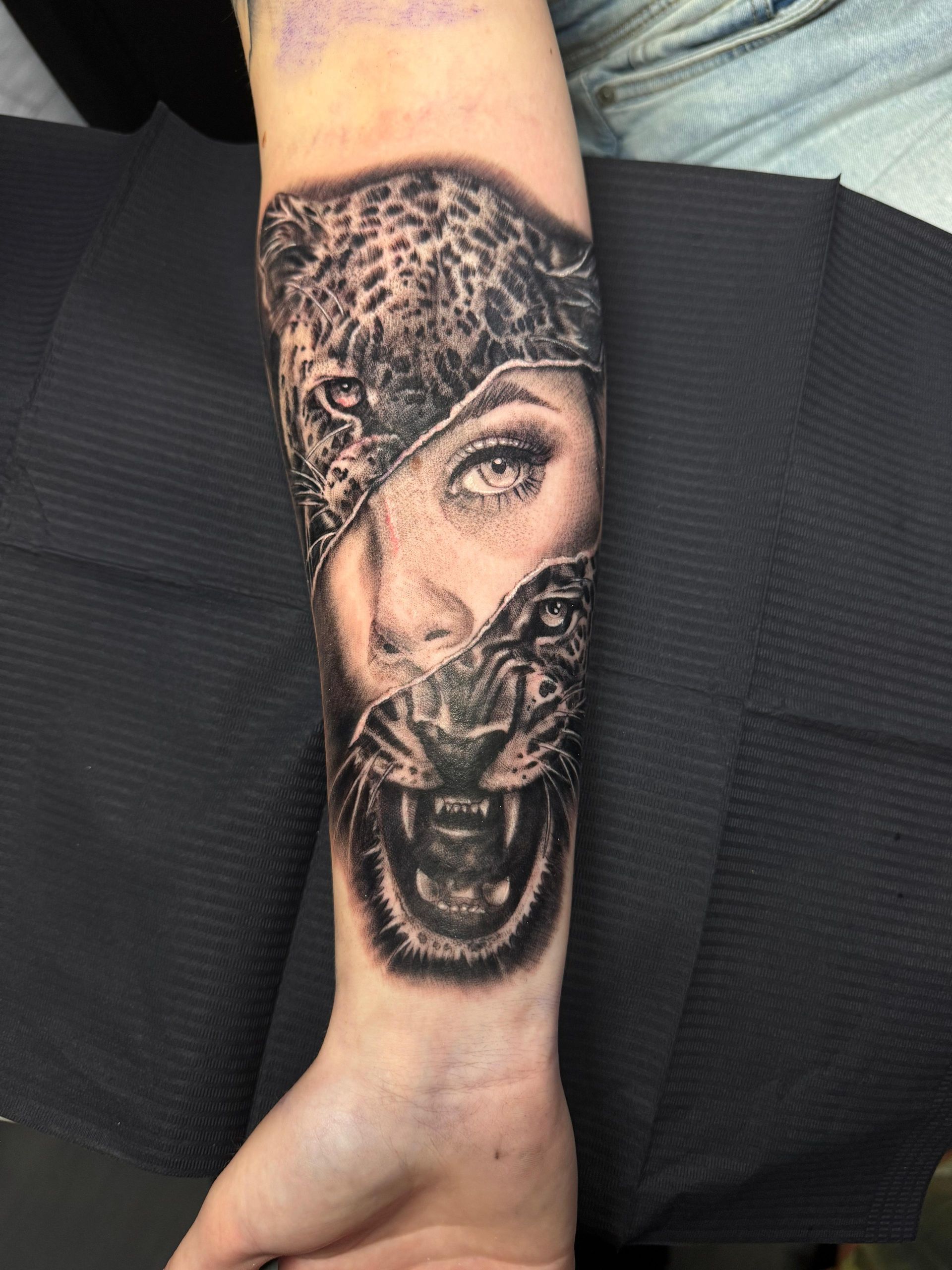 Der aus der Ukraine stammende Roman, kann mit seinen 32 Jahren schon mit 10 Jahren Tattooerfahrung glänzen und überzeugt mir einer Vielzahl von Richtungen die er zu tätowieren beherrscht. Der Frischling im Team entpuppt sich also als "alter Hase" im Tattoo Business.