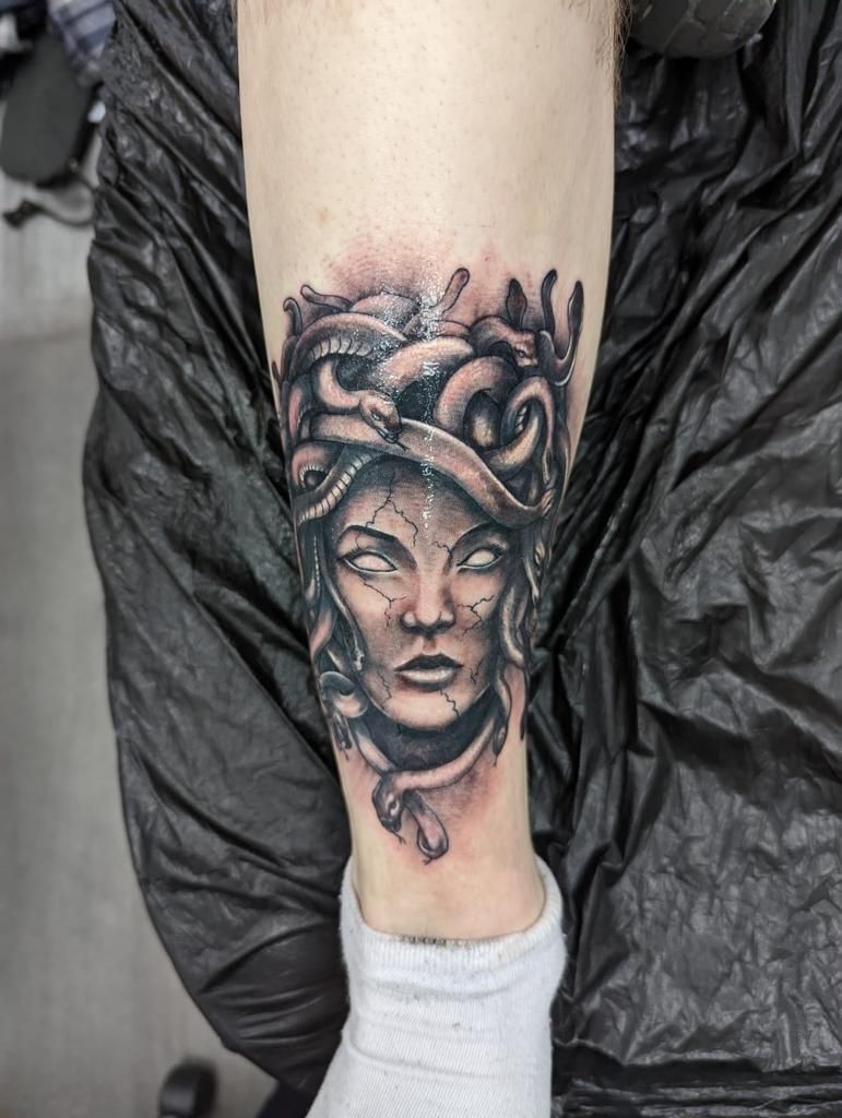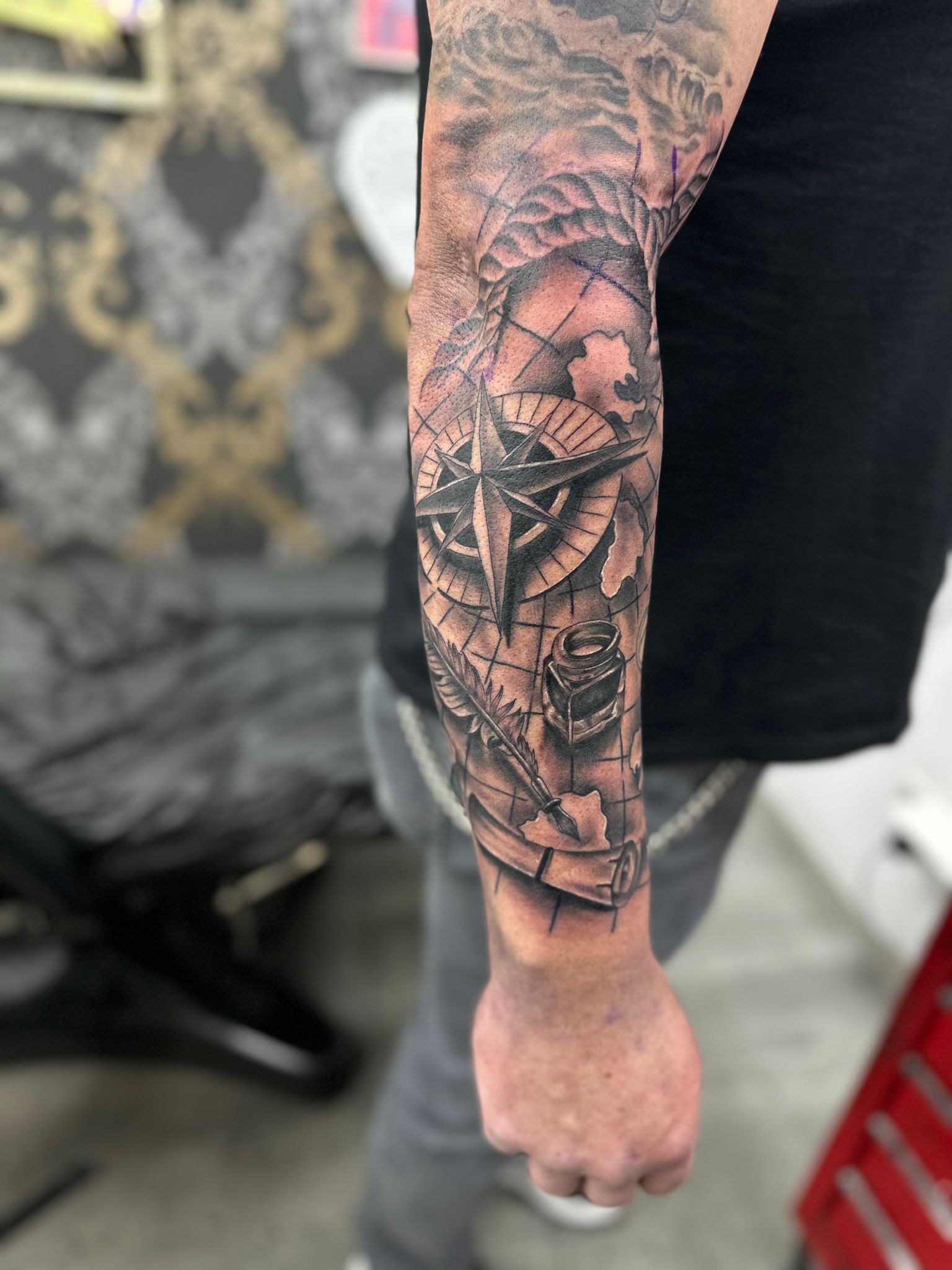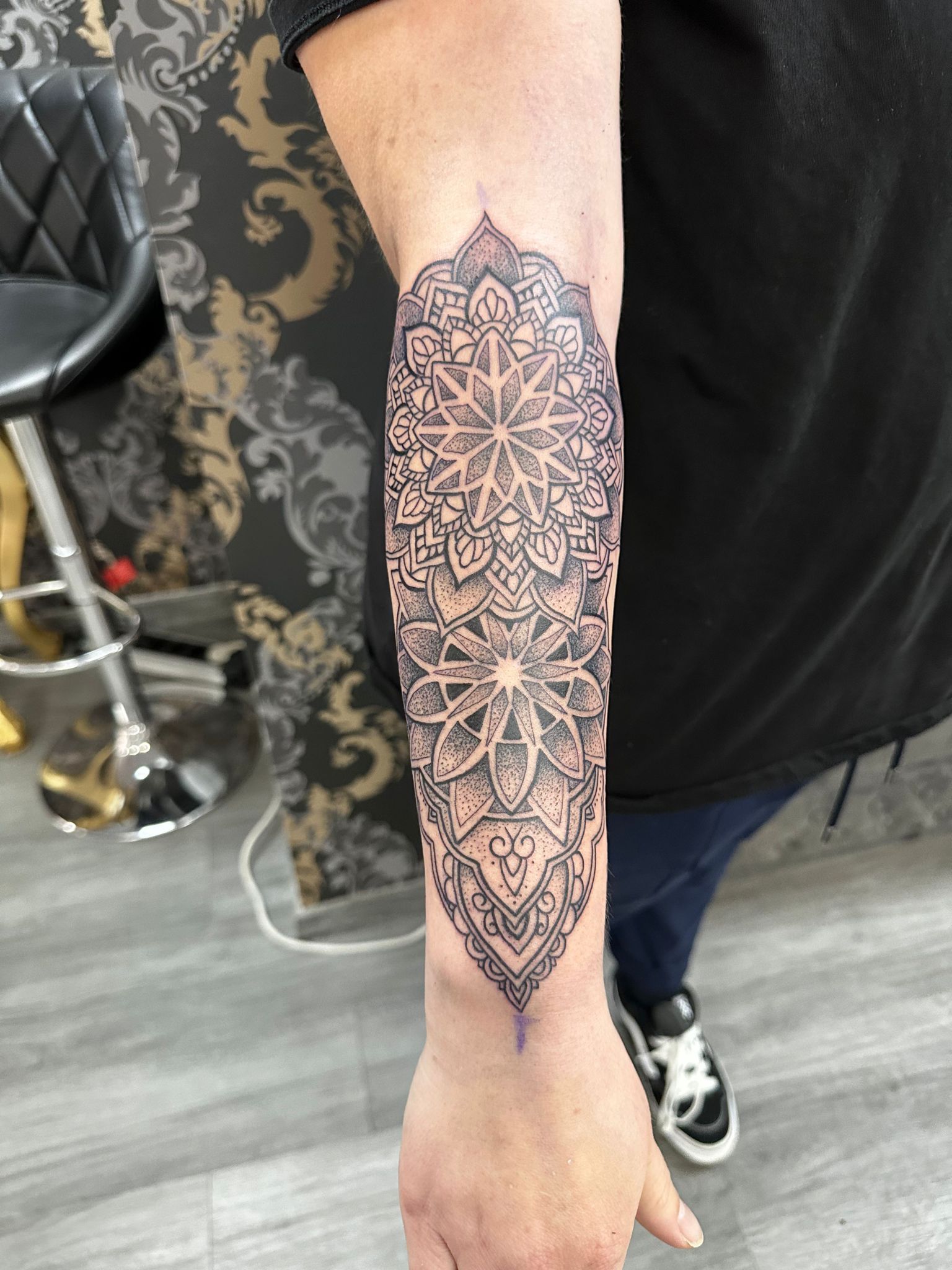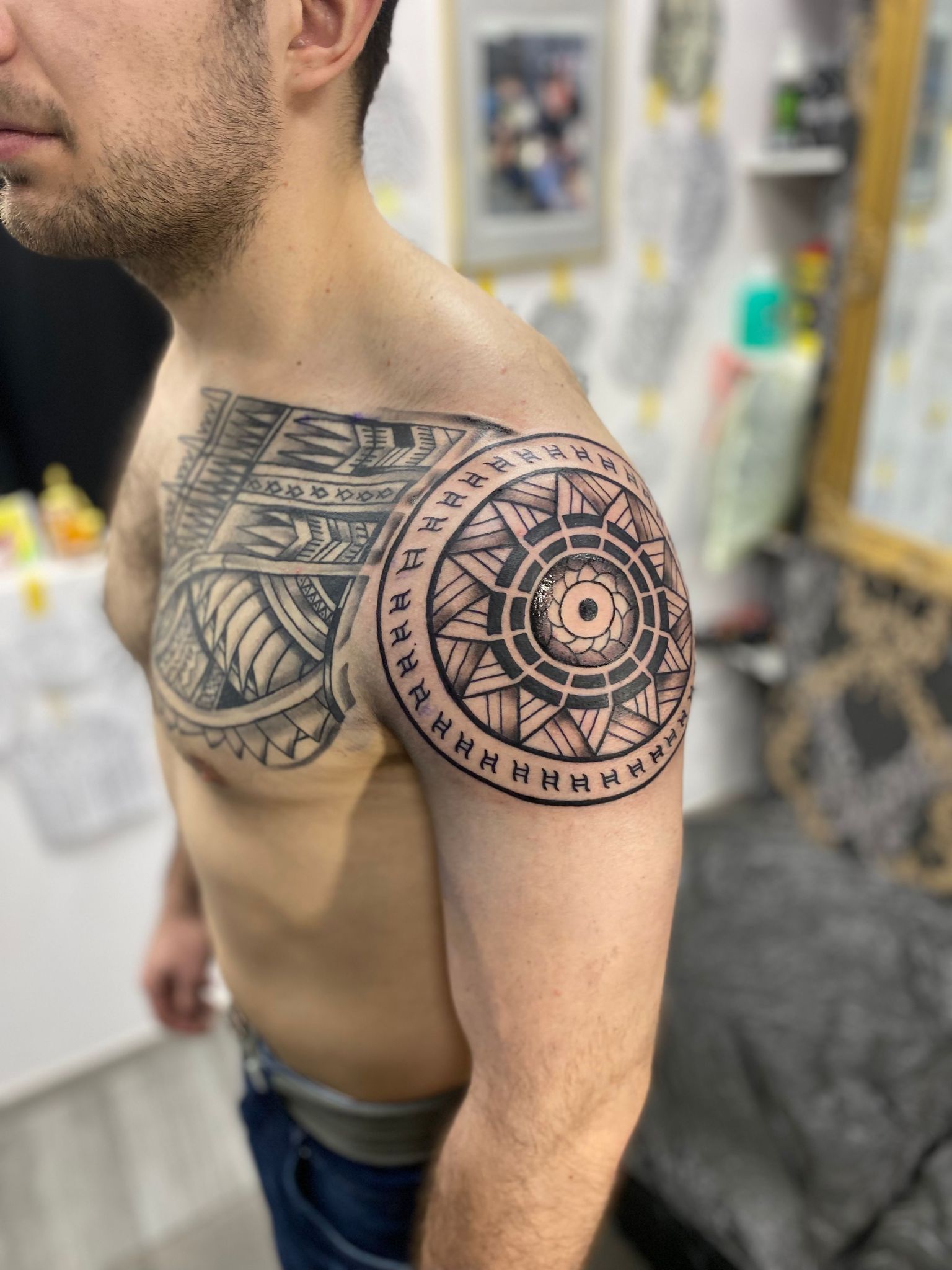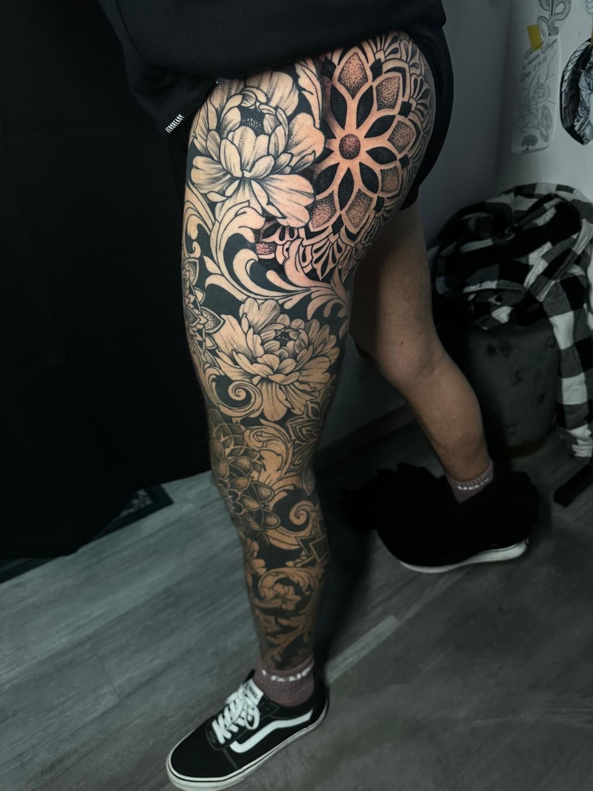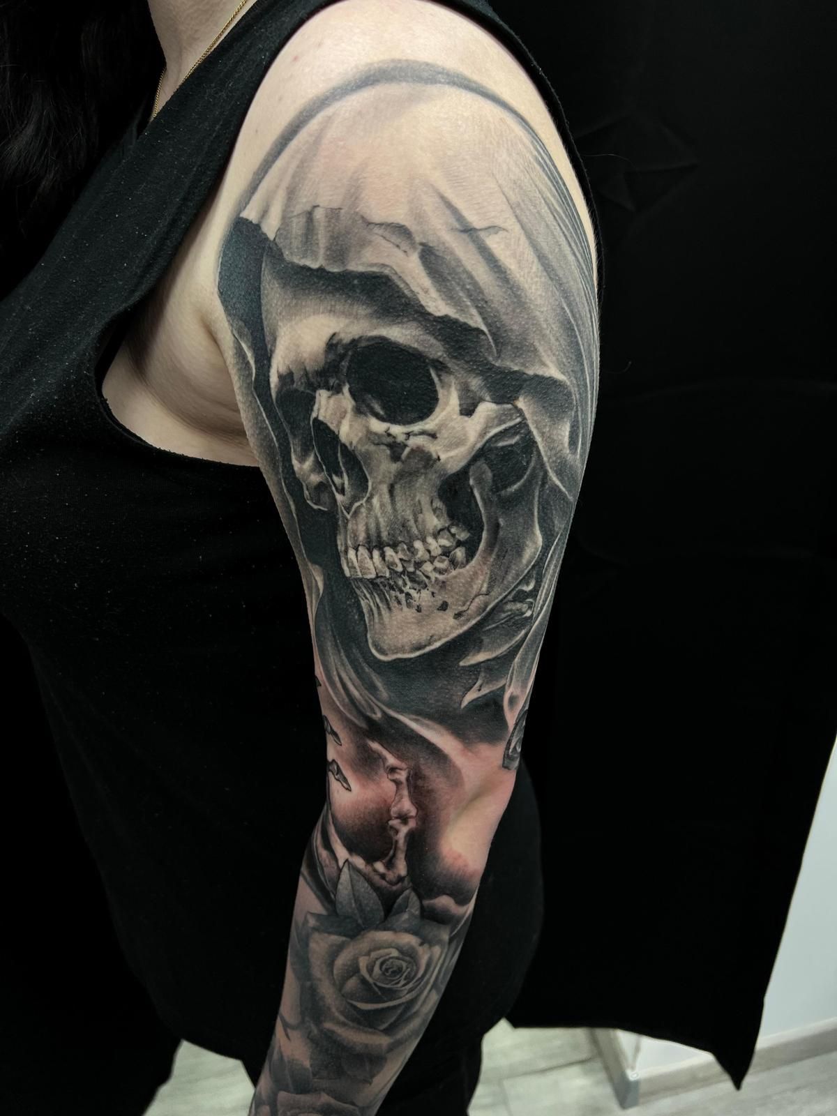 Der aus der Ukraine stammende Roman, kann mit seinen 32 Jahren schon mit 10 Jahren Tattooerfahrung glänzen und überzeugt mir einer Vielzahl von Richtungen die er zu tätowieren beherrscht. Der Frischling im Team entpuppt sich also als "alter Hase" im Tattoo Business.