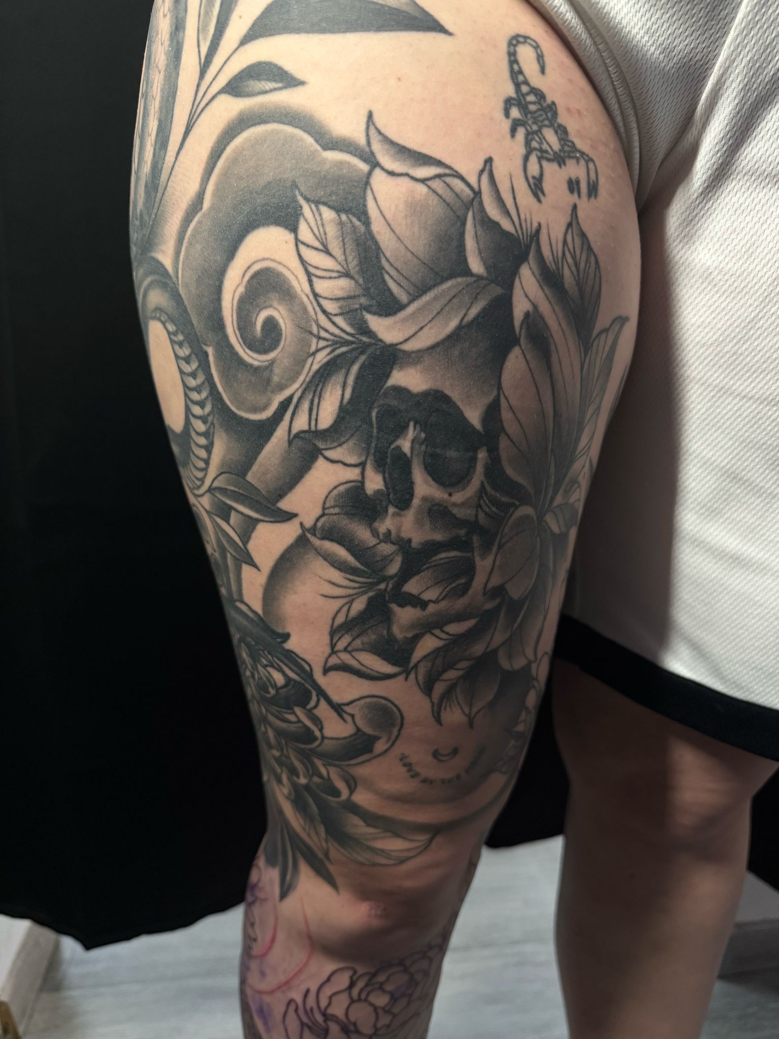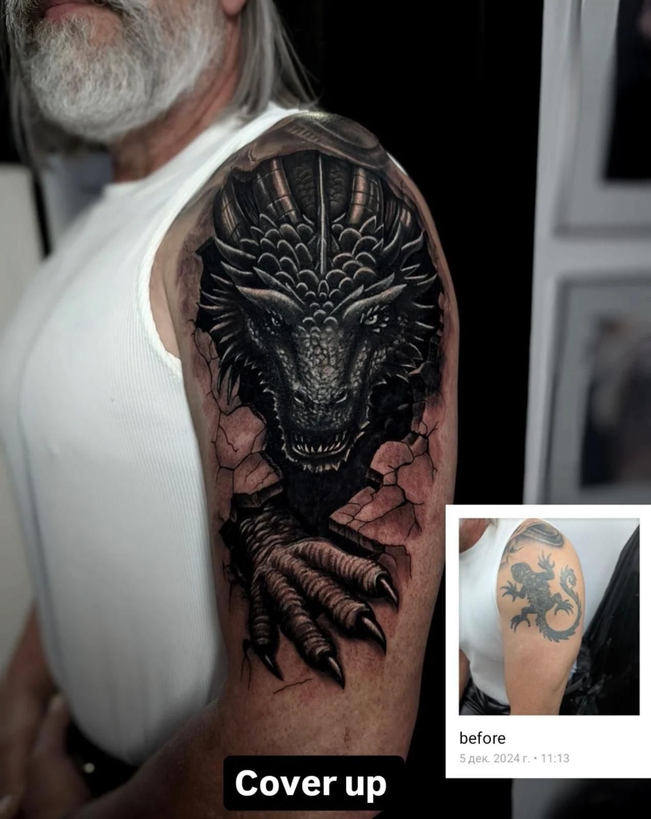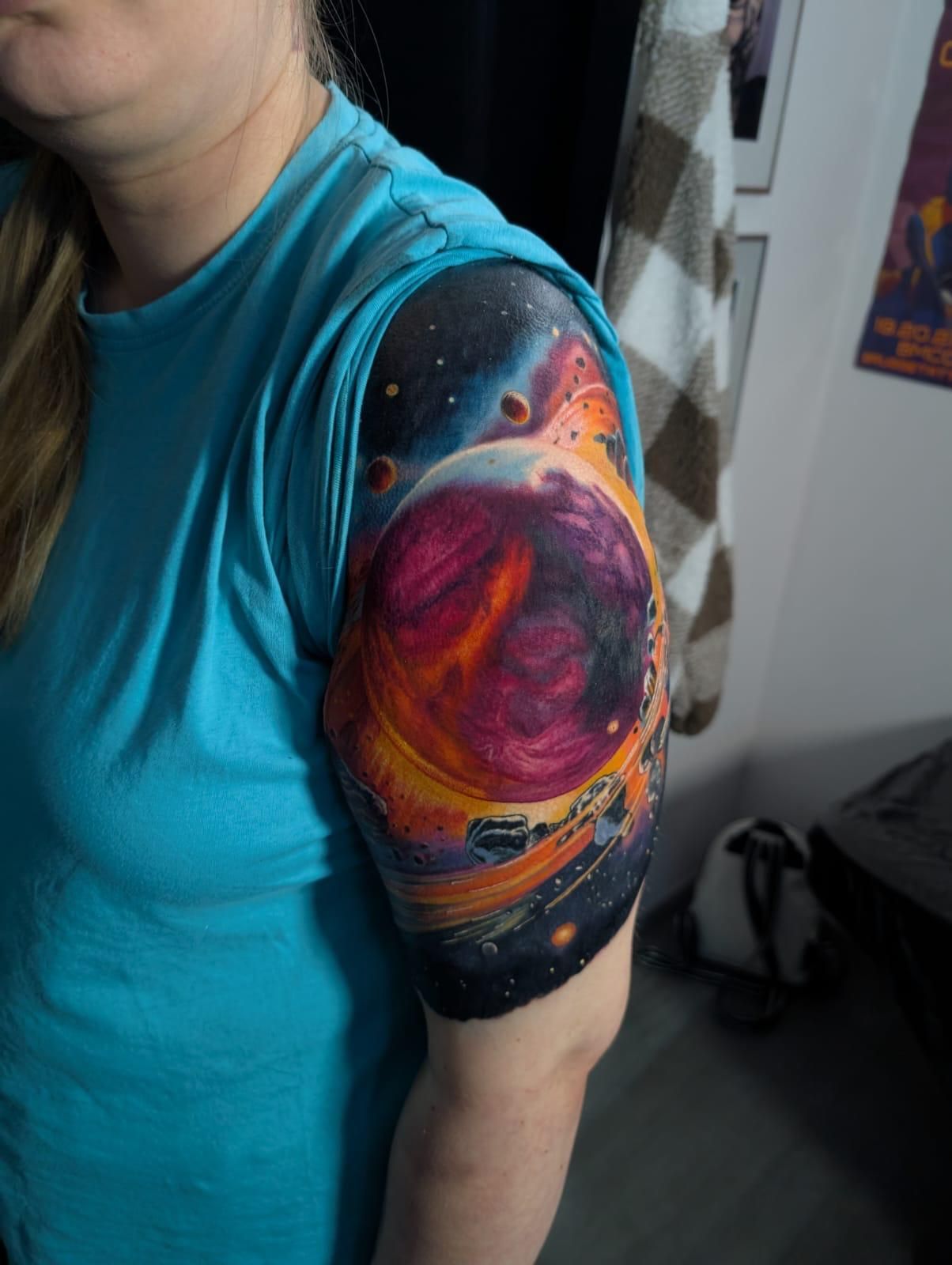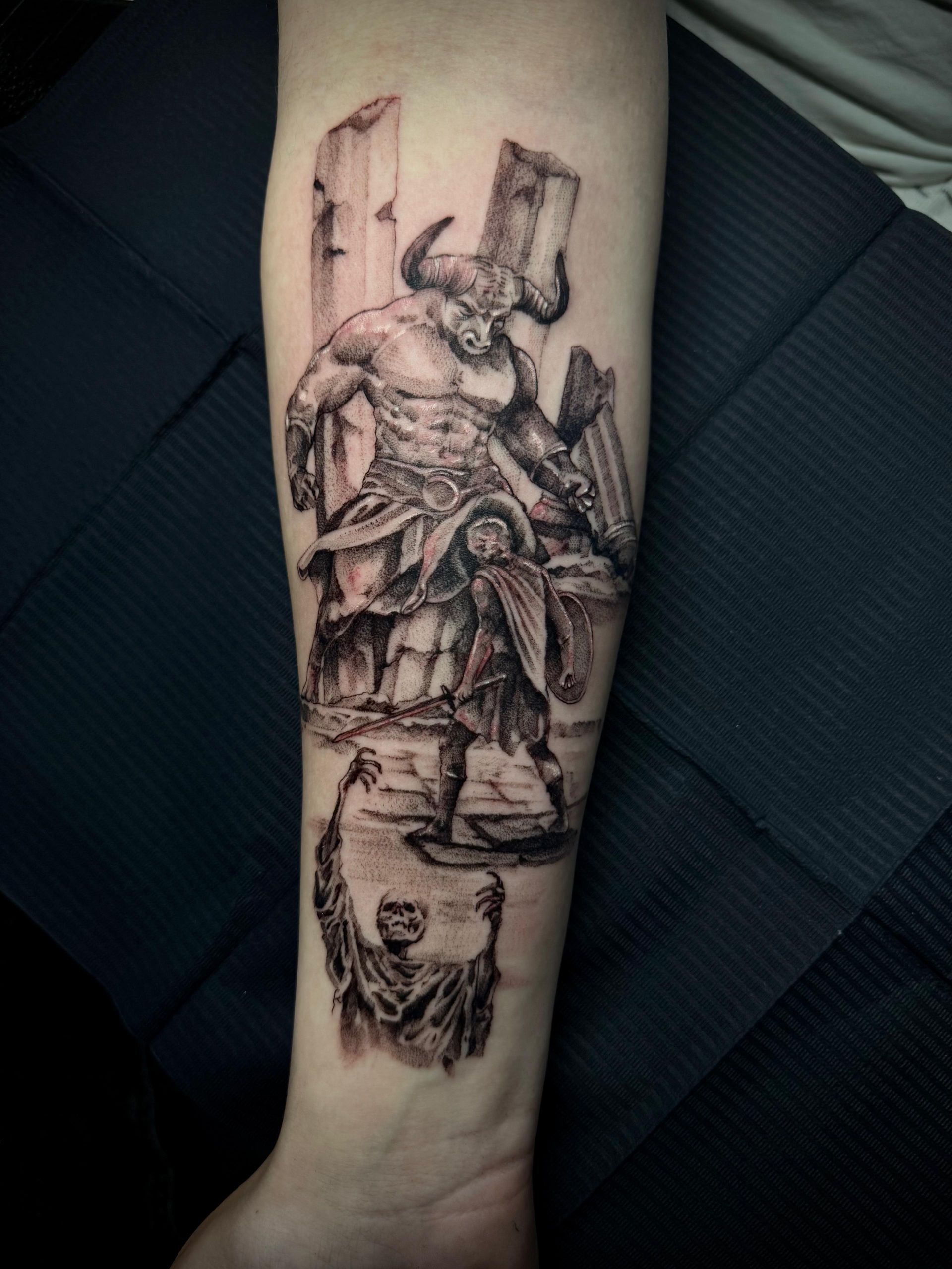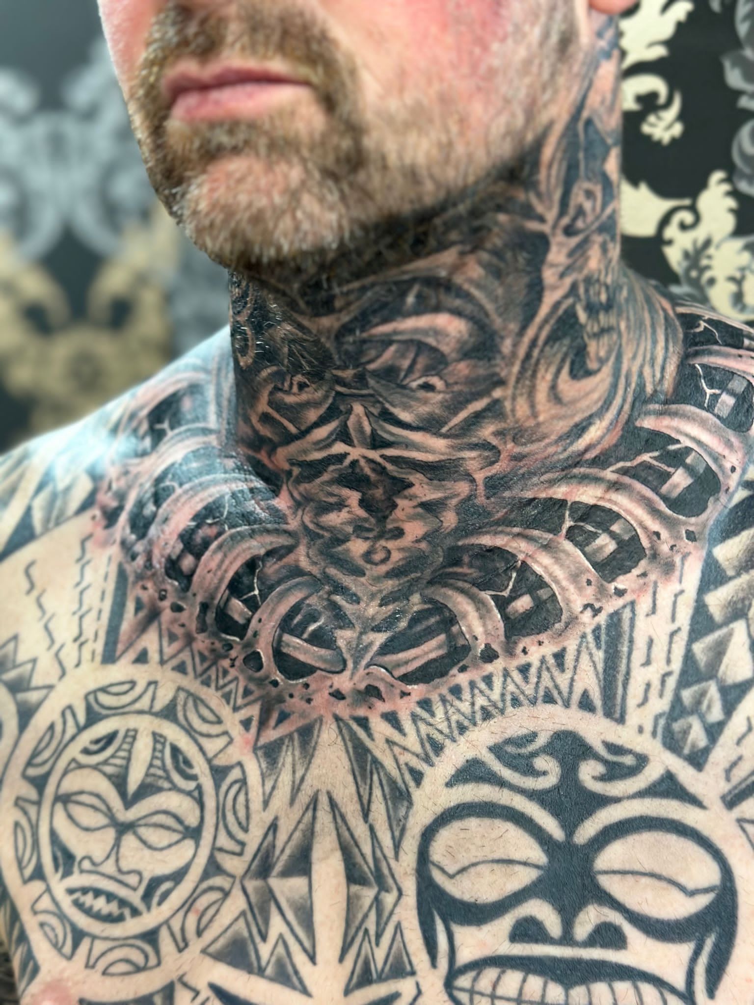 Der aus der Ukraine stammende Roman, kann mit seinen 32 Jahren schon mit 10 Jahren Tattooerfahrung glänzen und überzeugt mir einer Vielzahl von Richtungen die er zu tätowieren beherrscht. Der Frischling im Team entpuppt sich also als "alter Hase" im Tattoo Business.